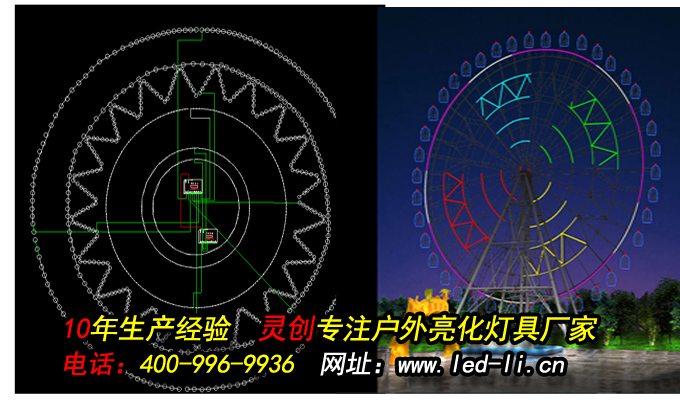 摩天輪亮化比一般的樓體亮化要程序復(fù)雜的很多,效果的設(shè)計(jì),接線(xiàn)圖,以及現(xiàn)場(chǎng)指導(dǎo)安裝都是密不可分的。我司能夠從項(xiàng)目開(kāi)始幫你跟蹤服務(wù)到項(xiàng)目的調(diào)試驗(yàn)收結(jié)束一站式服務(wù)。為你省事省心省力,用專(zhuān)業(yè)和實(shí)力說(shuō)話(huà)。