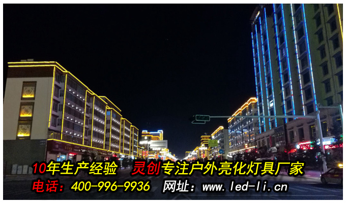 輪廓照明的應(yīng)用基本上以單色為主,黃光是當(dāng)?shù)剌^為喜歡和認(rèn)可的顏色,所以黃色貫穿整個縣城街道,燈具主要采用LED線條燈鋁槽灌膠的,泛光照明燈具采用的LED洗墻燈為主,下面就是一些現(xiàn)場調(diào)試的實拍圖,整商業(yè)街主干道多處是街面以及上面的建筑的亮化,使用的燈具多數(shù)是進行街道的點、線、面、進行裝飾,使用到的燈具為LED十字星光燈、LED泛光燈、LED點光源等等、、、