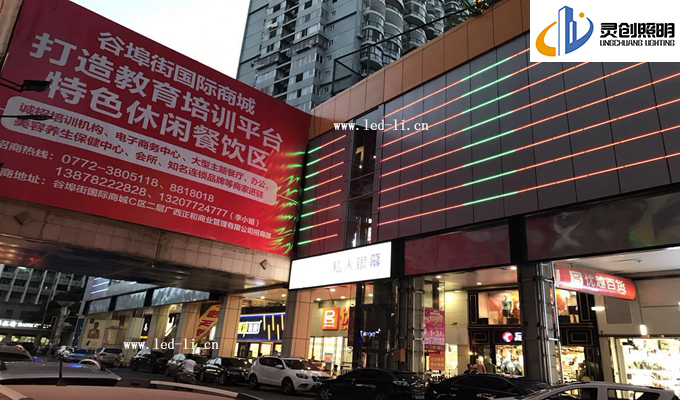 谷埠街國(guó)際商城位于廣西柳州百年商業(yè)老街谷埠街兩側(cè),項(xiàng)目所在地是柳州的城市中軸線,在柳州政府規(guī)劃的城市核心商業(yè)圈中,谷埠街國(guó)際商城位于柳州城市中心的核心位置。商場(chǎng)的亮化設(shè)計(jì)方案由我司提供并且采用我司的燈具安裝,再后期燈具調(diào)試上我司滿足客戶要求,技術(shù)人員現(xiàn)場(chǎng)進(jìn)行程序調(diào)試。