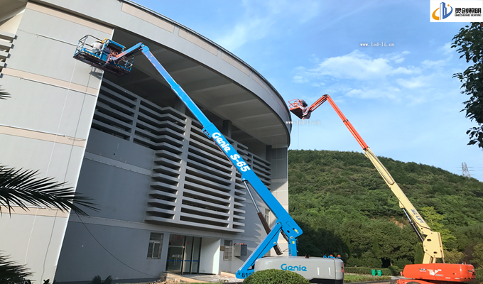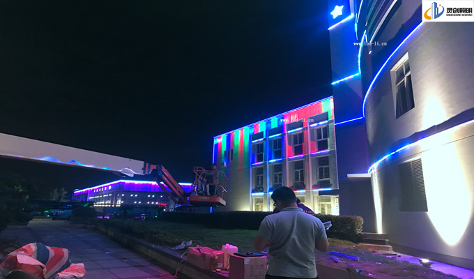 售后這一塊我司給客戶(hù)也是最大的支持,前期燈具的安裝圖紙先給到客戶(hù),后期燈具安裝后技術(shù)這邊直接到現(xiàn)場(chǎng)安裝調(diào)試,三棟建筑要實(shí)現(xiàn)同步定位,外立面使用大功率DMX512洗墻燈進(jìn)行安裝,場(chǎng)館的局部采用了DMX512線條燈進(jìn)行輪廓照明,游泳館的外立面則安裝一些星星點(diǎn)點(diǎn)的點(diǎn)光源進(jìn)行不規(guī)則的單白亮燈,營(yíng)造一種積極向上的體育精神。