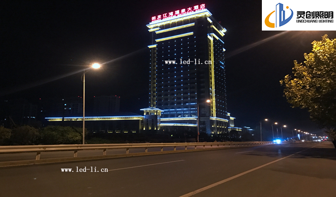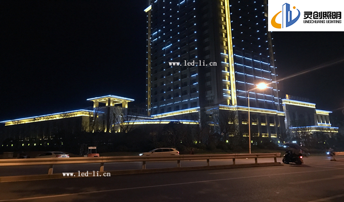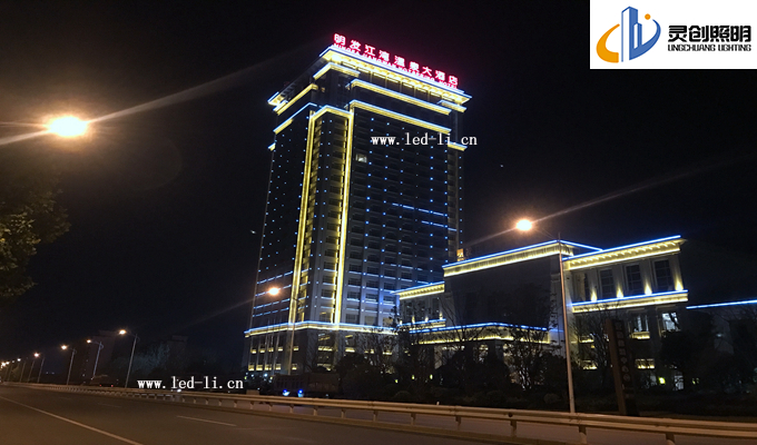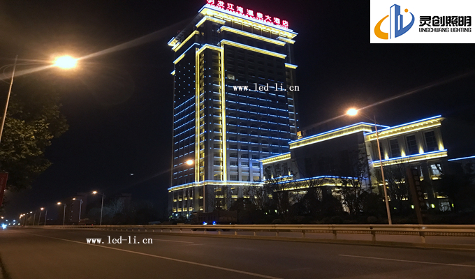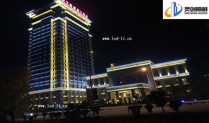 在夜景效果表現(xiàn)形式上,客戶提出效果圖的還原度要達到百分之八十,后期亮燈后得到酒店相關(guān)業(yè)主一致好評。特備是調(diào)試階段,我司技術(shù)到現(xiàn)場,處理接線,以及程序?qū)崿F(xiàn)效果等方面,都盡心盡力的滿足甲方提出的效果要求。這次酒店亮化主要分為三個大塊去體現(xiàn)。