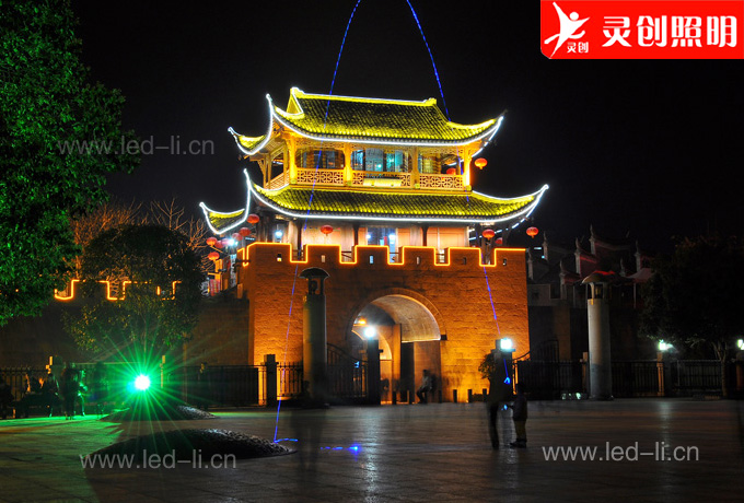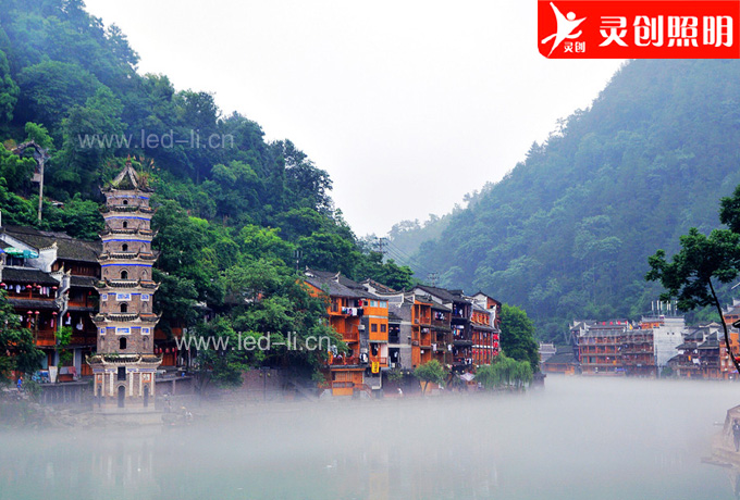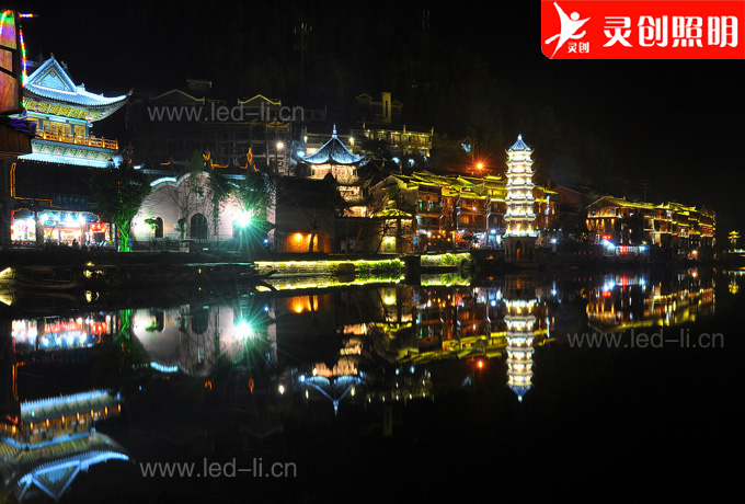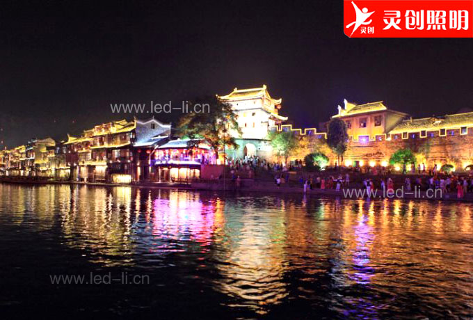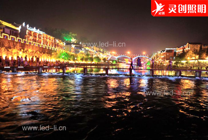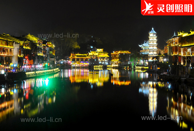 湖南鳳凰古城為成功對接世界旅游發(fā)展潮流,鳳凰縣結(jié)合縣情實(shí)際,提出“十二五”期間著力打造“世界品牌大鳳凰、休閑靚麗夜鳳凰、縣強(qiáng)民富金鳳凰”發(fā)展目標(biāo)。鳳凰古城沱江風(fēng)光帶夜景亮化工程是打造“夜鳳凰”的核心內(nèi)容,是加快鳳凰文化旅游提質(zhì)增效的重要產(chǎn)業(yè)工程之一。該項(xiàng)目內(nèi)容包括:一江即一條沱江景觀沿線;二帶即沿岸兩條立面景觀帶;三橋即鳳凰大橋,跳巖梁橋,虹橋;四山體即東嶺背景區(qū)、桐坡背景區(qū)、南華山背景區(qū)、筆架山背景區(qū)和八節(jié)點(diǎn)即南華門、北門、東門、西門、沙灣、古城墻、文化廣場、道門口。
