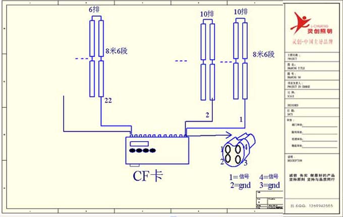 規(guī)格:36米X8米 每個(gè)平方裝LED數(shù)碼管8條 一共:2304條6段數(shù)碼管 108珠 透明管D50X37 8口大功率控制器:3臺 經(jīng)過靈創(chuàng)照明工程師前期施工圖與電話溝通,圓滿完成任務(wù)。