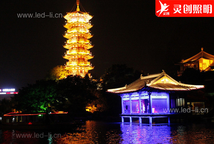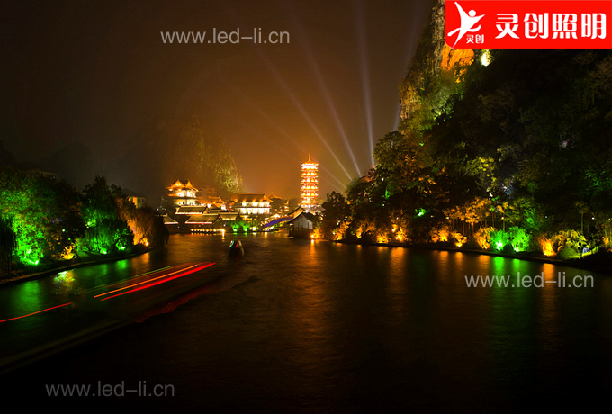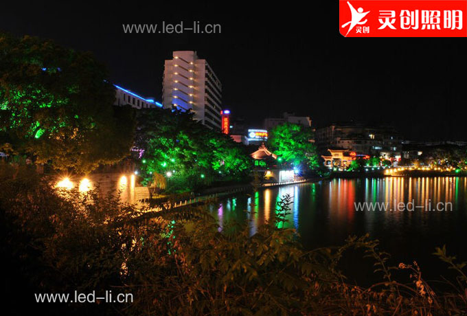 木龍湖上木龍塔亮化 具體LED單黃投光燈 LED單綠投光燈