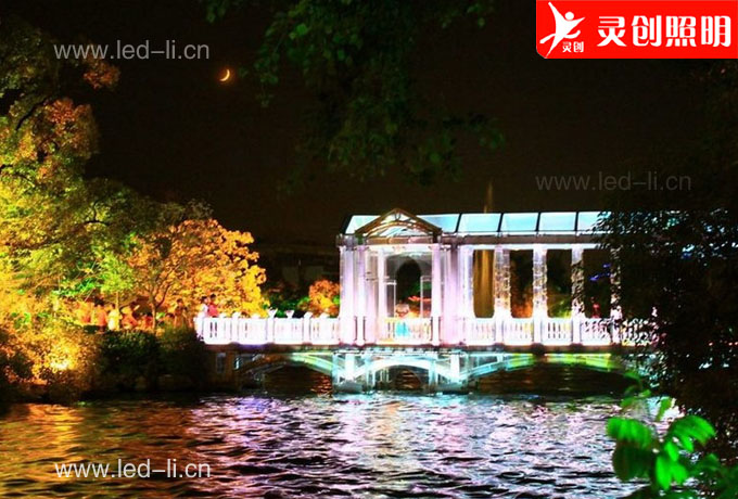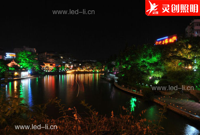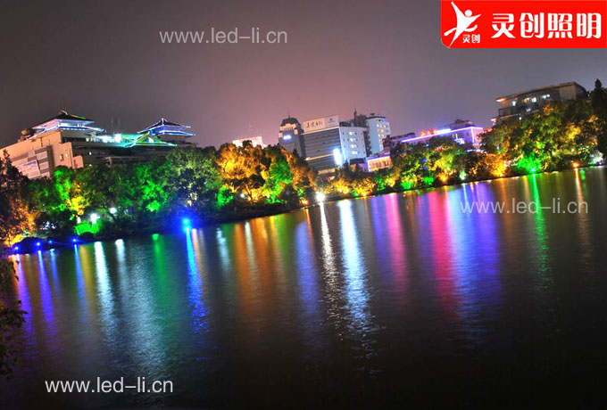 杉湖邊上的杉湖十子屏風(fēng)亮化 具體為單黃LED投光燈