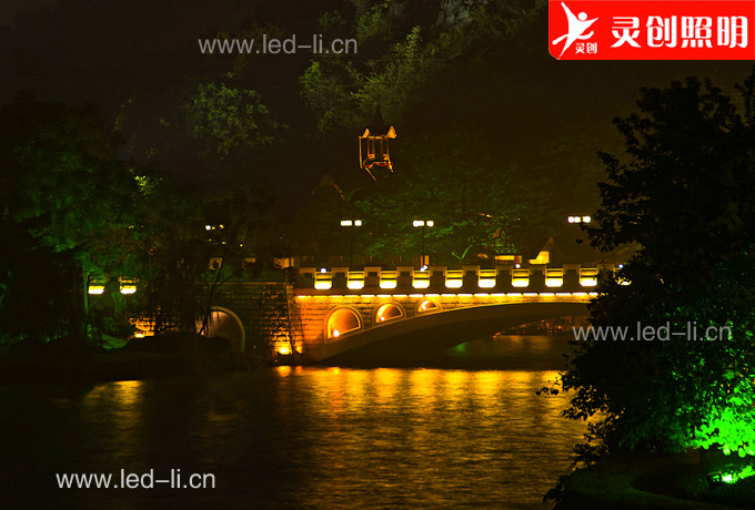 西清橋夜景亮化 具體LED單黃投光燈 LED單綠投光燈