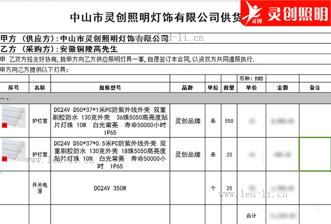 安徽銅陵高先生選購的LED護欄管雙重防水已經(jīng)收貨并驗收。通過網(wǎng)絡(luò), 安徽銅陵高先生找到并了解了制作LED護欄管雙重防水的廠家靈創(chuàng)照明,在得知該公司需要加厚型的LED護欄管雙重防水時,靈創(chuàng)照明客服就推薦了LED護欄管雙重防水。