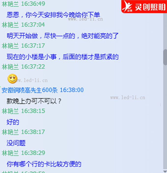 >3、感謝貴陽陳總、成都王總、福建張總再次選擇靈創(chuàng),LED數(shù)碼管,LED點光源,LED投光燈