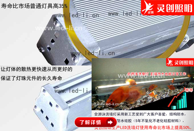 靈創(chuàng)照明對LED洗墻燈的芯片與制作工藝都是非常講究的,在選擇LED芯片上,一般是選擇臺灣與美國正規(guī)芯片,亮度與穩(wěn)定性相對來說是比較高的,在制作工藝上,靈創(chuàng)照明推出了會游泳的LED洗墻燈,經(jīng)過市場驗證,得到客戶的認(rèn)可與市場的追棒。