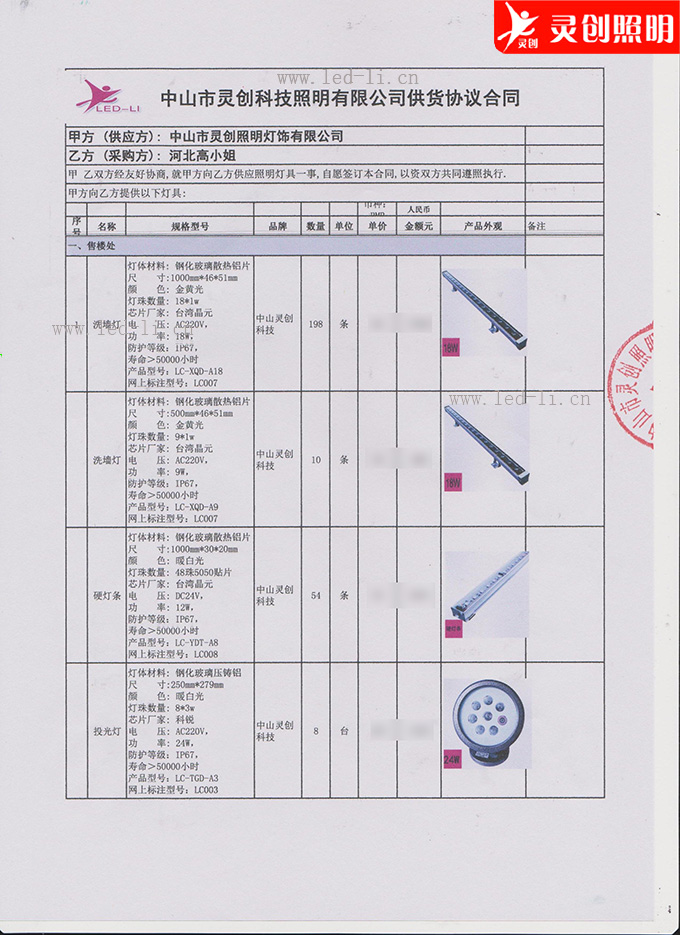 河北定州工程安裝負(fù)責(zé)人高小姐之所以選擇靈創(chuàng)照明為其戶外燈具長期合作伙伴,從去年開始,靈創(chuàng)照明與負(fù)責(zé)人高小姐已經(jīng)有多次的合作,靈創(chuàng)照明的LED投光燈、LED點光源一直是其首選的供應(yīng)商。本月訂購的一批LED投光燈和LED點光源同樣已經(jīng)制作完成。